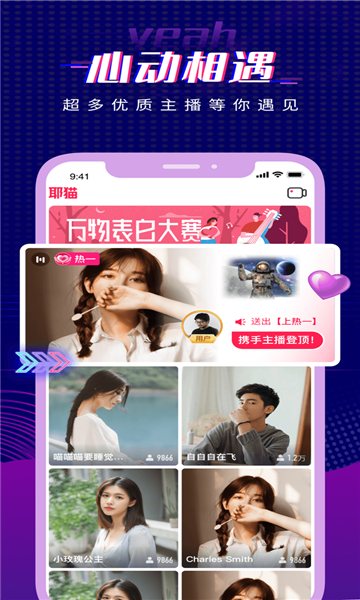 耶猫是杭州米络文化传播有限公司打造的社交聊天工具,在这里,你不仅能体验到丰富多样的心动交友模式,还能参与直播带货的趣味玩法,既可以推广分享,也能结识好友,各种玩法精彩纷呈,充满乐趣,期待你的加入!