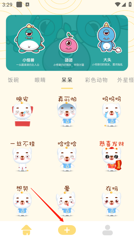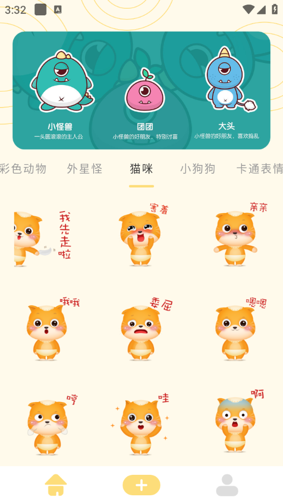 首页页面里有非常多的表情包分类,像卡通表情、小猫小狗这类都包含在内。
