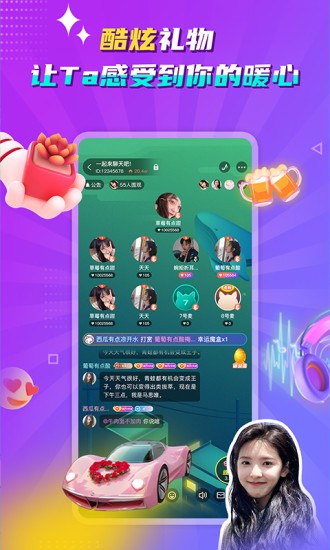 这款平台主打语音交友,核心玩法是围绕流行新青年圈层打造的语音派对。