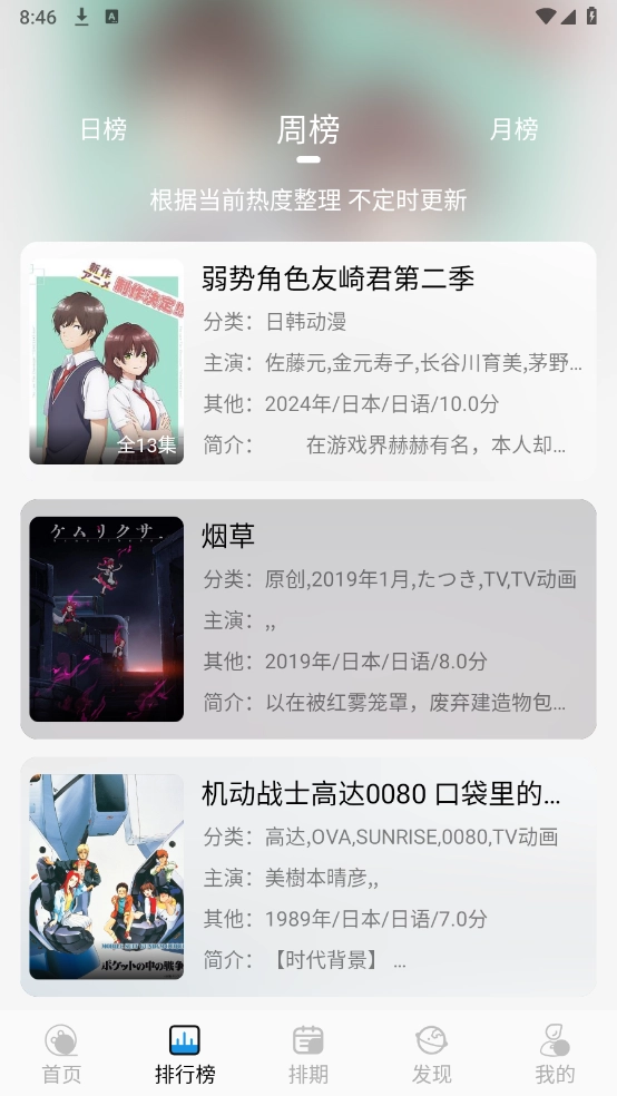 5、“排期”页面展示了每日的动漫档期,方便你查看喜欢的动漫的播放时间。