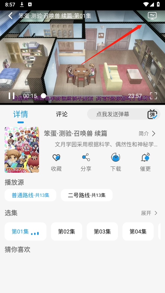 6、挑选好自己喜欢的动漫资源并打开,点击对应的集数就能开始观看了。