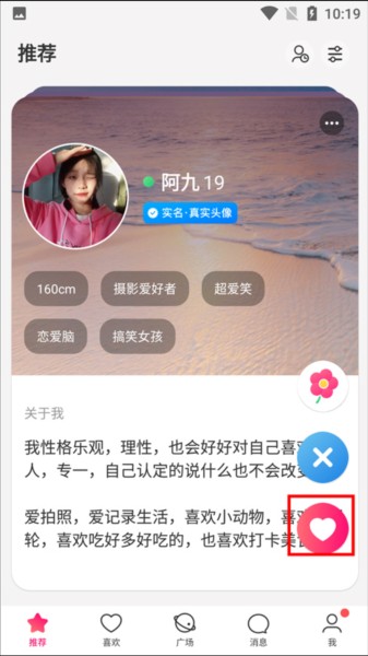 设置完成后返回主页,点击底部的爱心按钮进行点赞,建议多点击几个爱心表达喜欢。