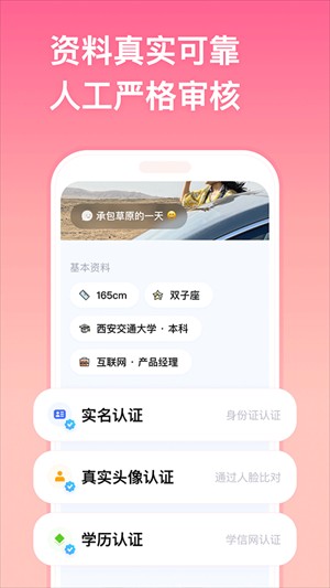 所有用户均已通过实名认证,确保了用户信息的真实性,您可以安心交友。