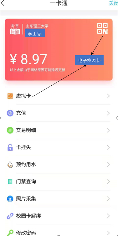 1、登录“山东理工大学”,进入应用页面中点击“一卡通”,