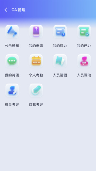 人事工作处理,包括申请、审批以及人员请假、人员调动、成员考评等事项的在线化办理;