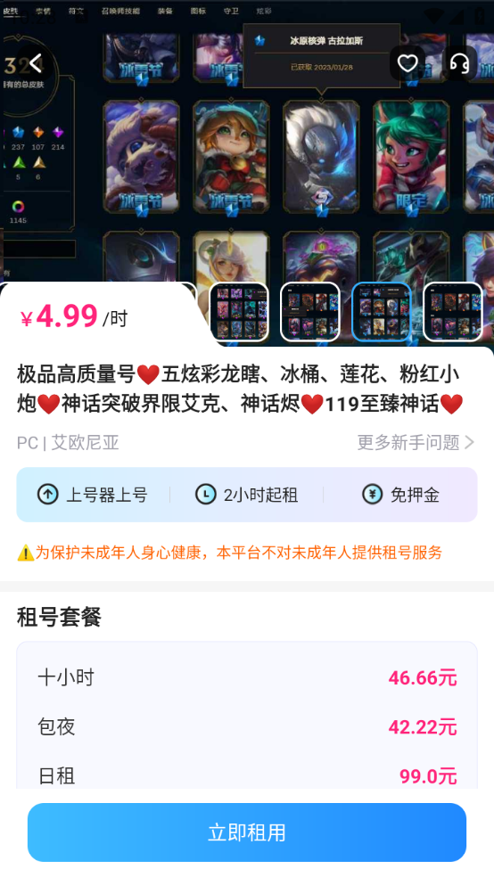 1、便捷的账号租赁服务:用户能够迅速挑选并租用游戏账号,操作简便,使用体验高效流畅。