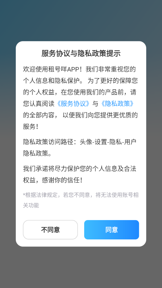 1、首先要在本站完成租号咩的安装,并同意相关的政策与协议。