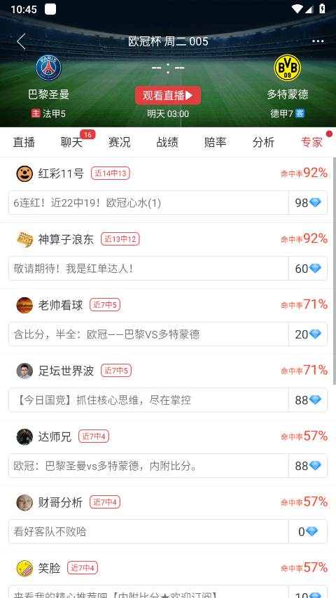 3、用户能够看到不少红单高手。点击下方的“专家预测”查看更多信息。