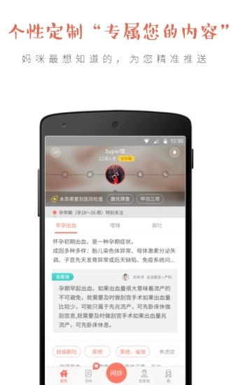 【个性定制】 无论是备孕阶段、怀孕期间,还是育儿过程中,妈咪知道都能洞悉你的需求,为你精准推送专属内容,通过个性化定制,助你轻松变身科学育儿的辣妈。