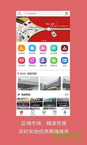 得品云商是依托地理位置(LBS),融合线上线下(O2O)模式,链接区域内中小箱包生产企业与原材料及服务供应商,借助大数据、图像识别等先进技术构建的极速高效、精准匹配且用户体验友好的原材料采购服务平台。