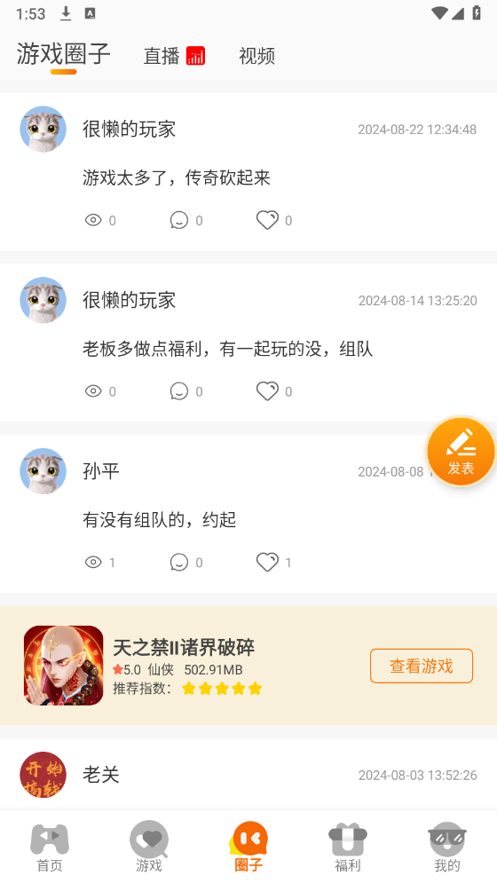 5、能够加入“圈子”社区,找到兴趣相投的游戏伙伴。