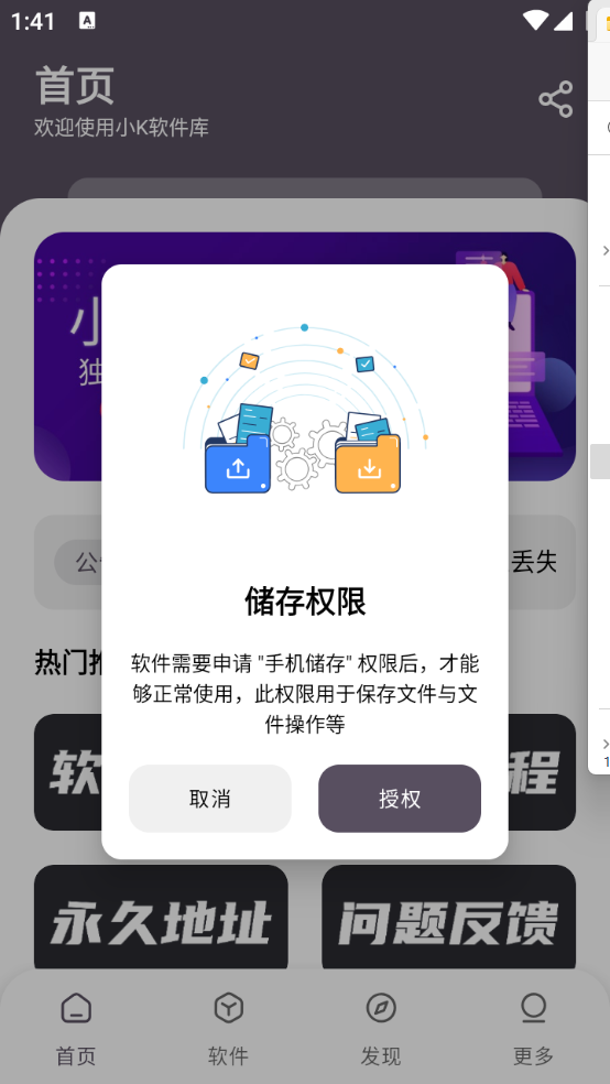 1、用户首先需要在本站安装好小k软件库,开启相关权限。