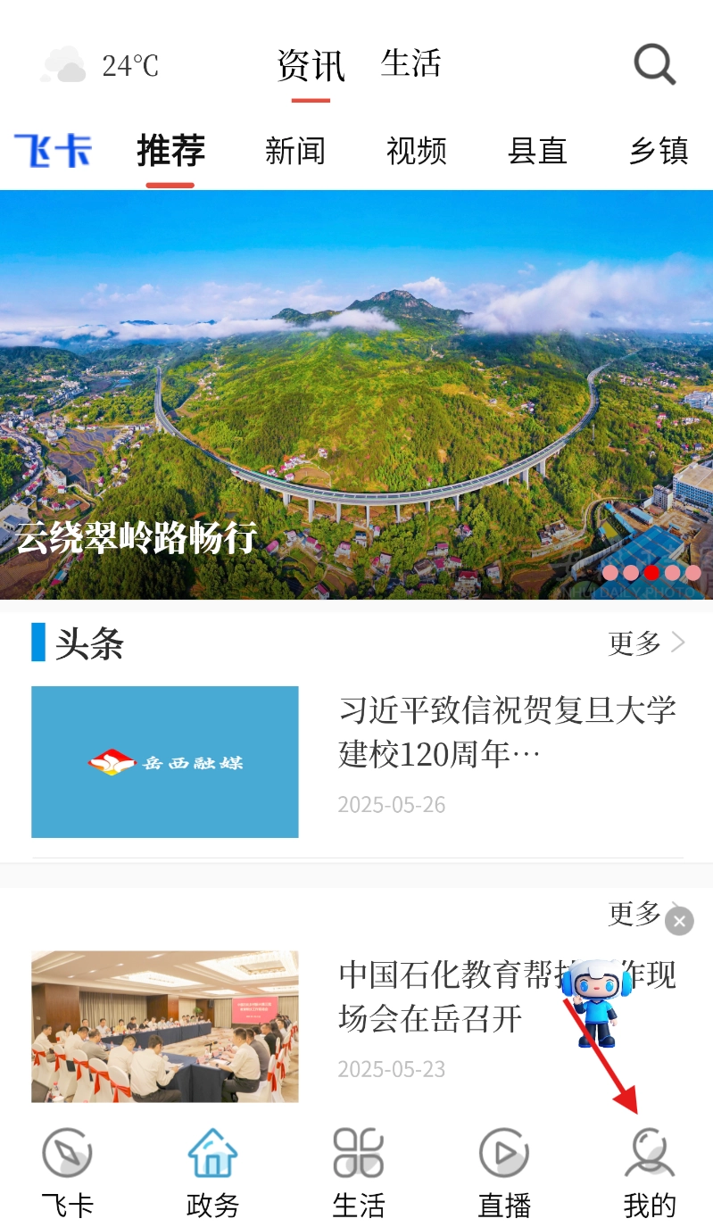 1、打开康养岳西,于主界面下方找到 “我的” 选项,点击进入个人中心页面。