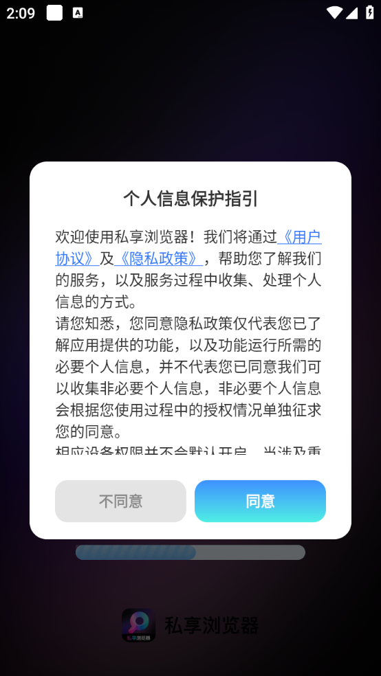 1、用户需在本站完成私享浏览器的安装,并查看且同意隐私政策与用户协议。