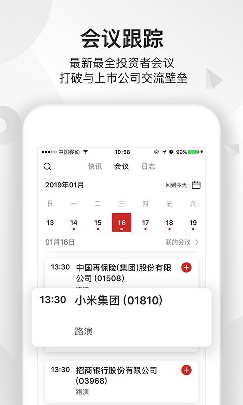 会议频道:全方位收集港美股上市公司会议相关信息,包括业绩会、股东大会、正反向路演、电话会议等。凭借众多上市公司的授权,我们为您提供直接报名入口,助您优先获取珍贵的入场资格。