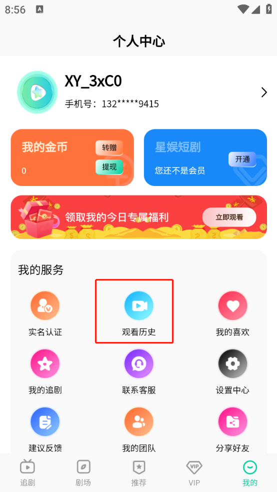2、点击“观看历史”。