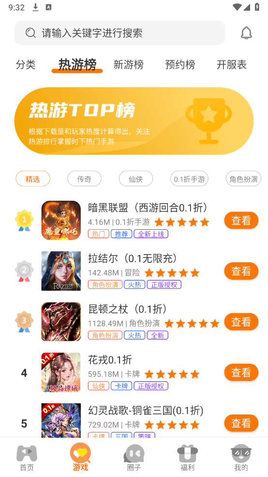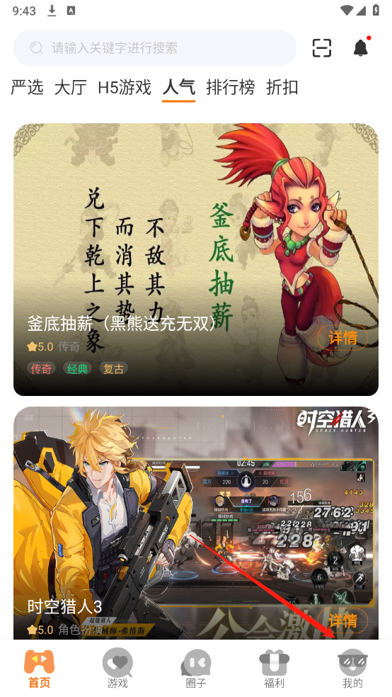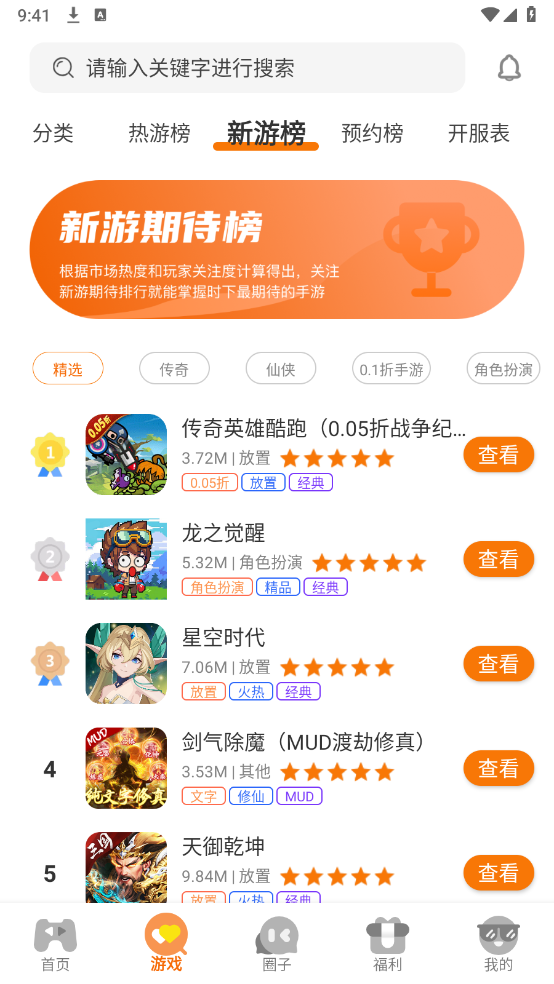2、首页和游戏栏目有很多的游戏资源,新游、热搜榜以及预约榜单。
