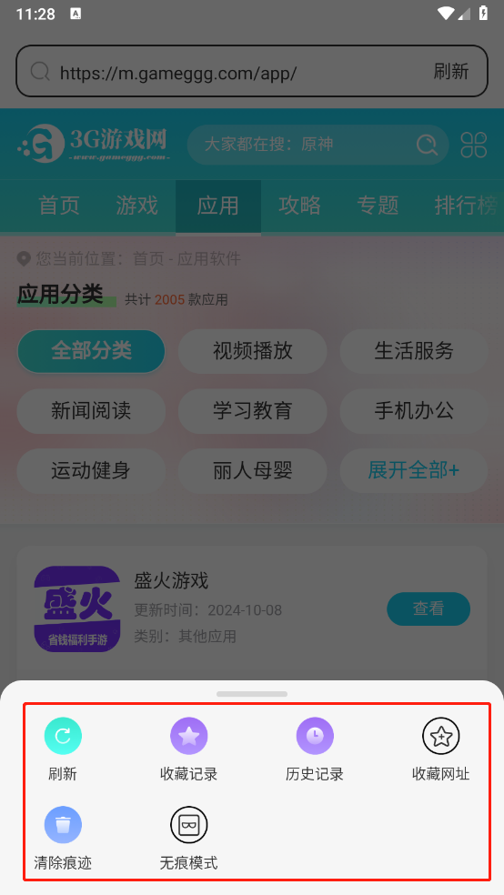 4、点击右下方的三个横杠标志,可以对网页进行收藏、转发、刷新等。