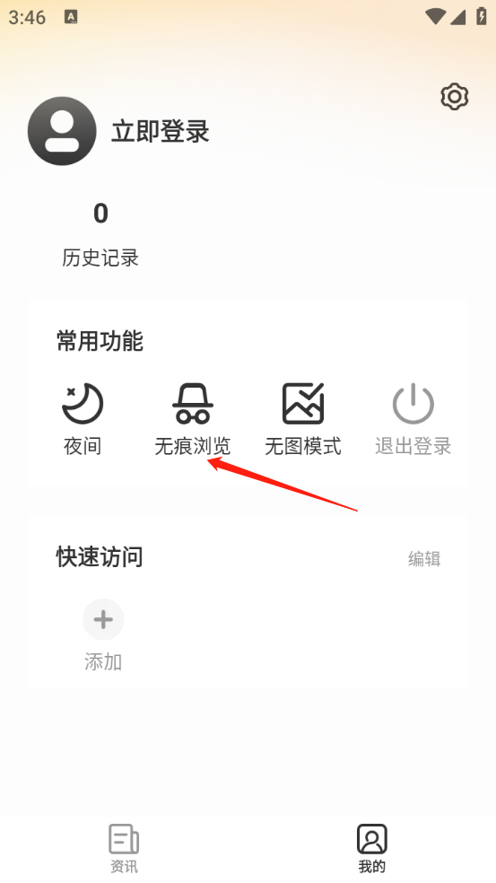 2、点击“无痕模式”。