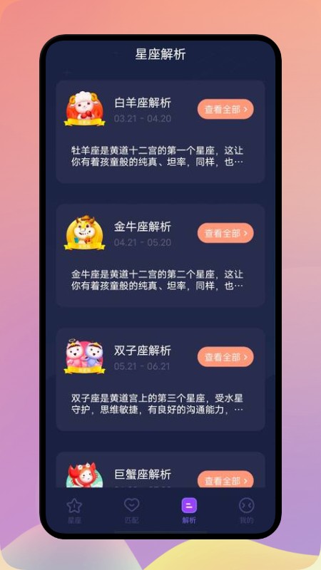 软件界面可爱又有趣,各式萌趣的星座形象为你带来满满的可爱视觉体验。