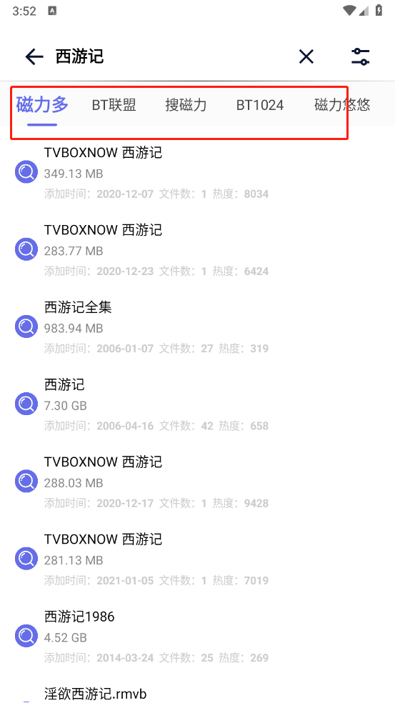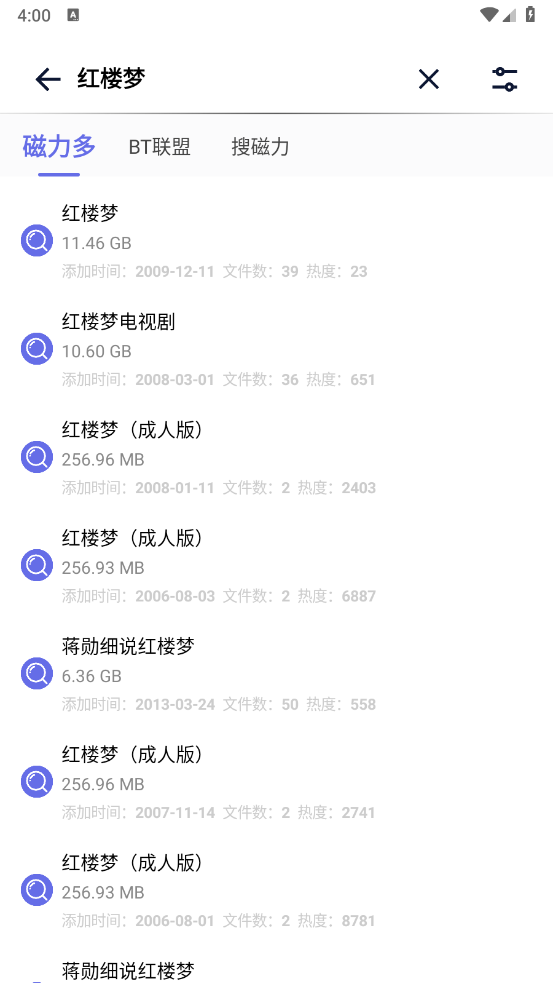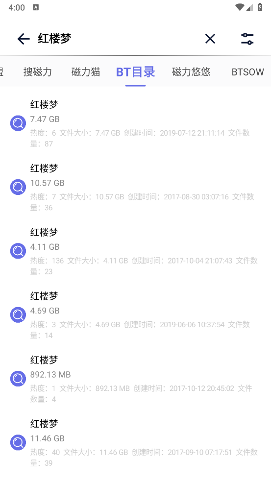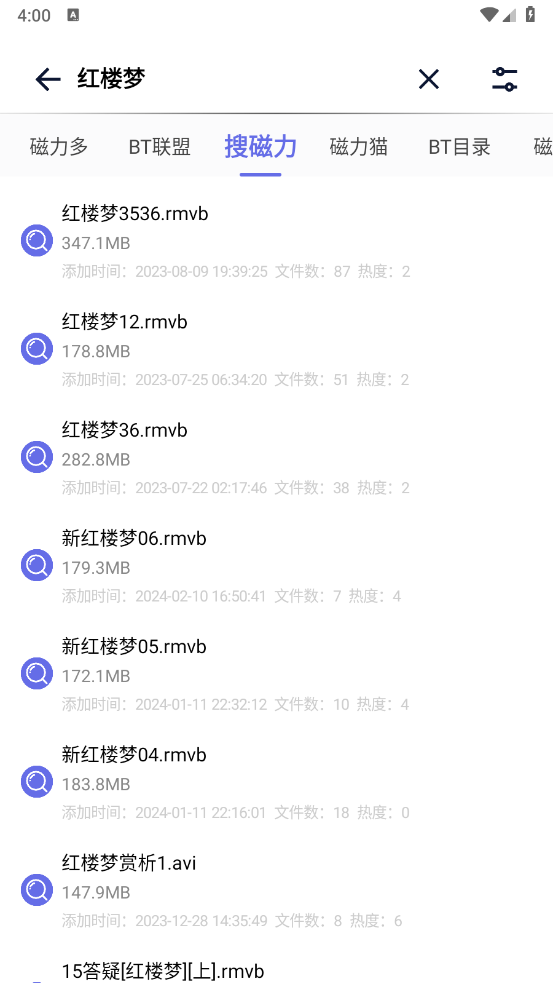 3、会立刻跳转到对应的内容,还能切换不同的磁力搜索结果。