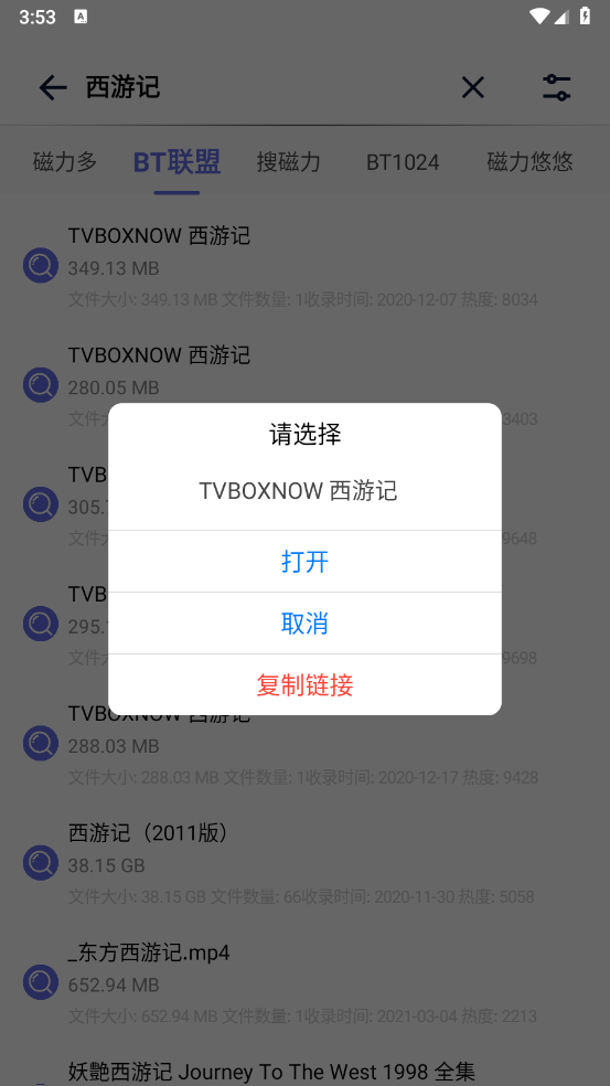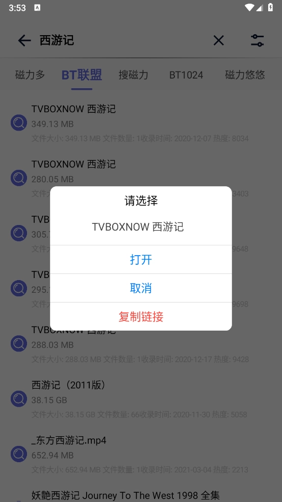 4、挑选所需资源后点击,可直接打开或复制链接。