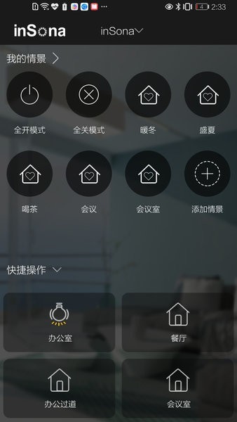 这是一款智能硬件控制软件,用户借助inSona能够迅速配置家中设备的情景模式,还能依据不同房间进行快捷操作,从而畅享智能生活服务。