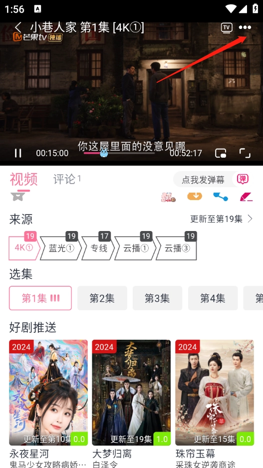 1、点开想看的影视剧集,点击右上角的三个点。