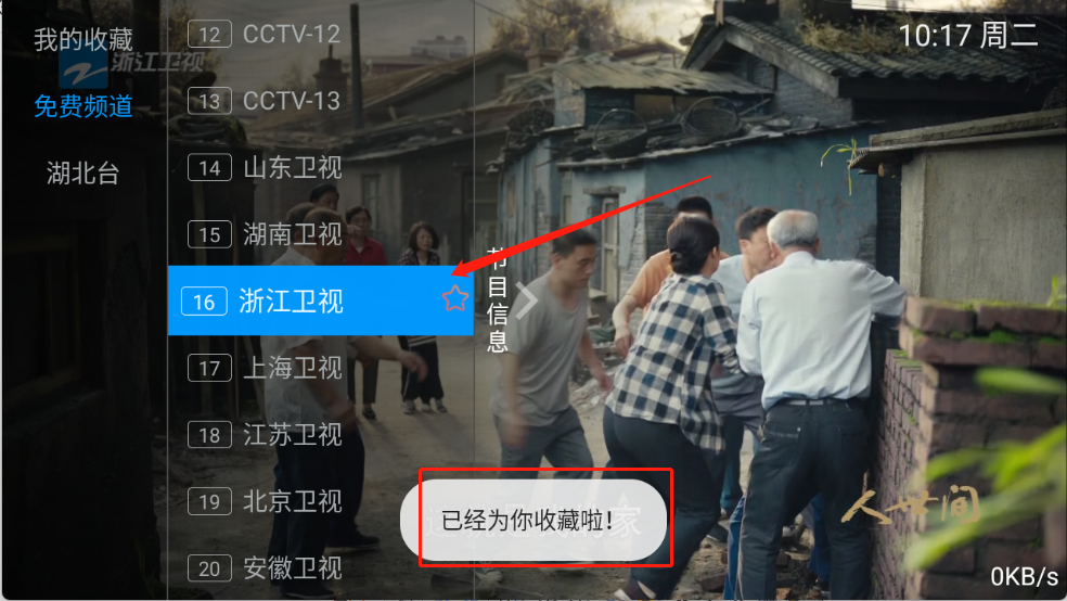 1、用户长按要收藏的电视频道,有“已收藏”提示就说明收藏成功了。