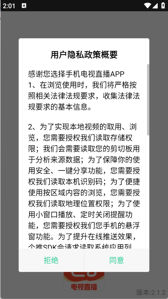 1、首先在本站安装好手机电视直播软件,查看并同意隐私政策与用户协议。