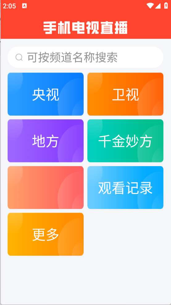 2、进入首页之后有央视、卫视以及地方频道等类型。