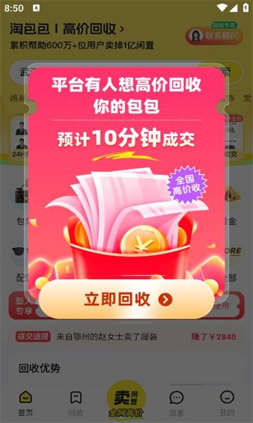 快来淘包包,放心卖闲置,极速回血。