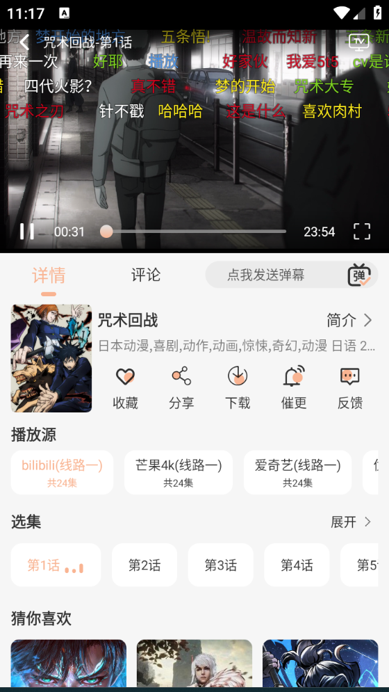 6、选择好动漫直接点开,选择集数即可观看啦!可以看弹幕哦。