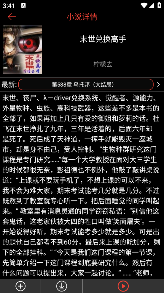 4、打开喜欢的小说you星系的介绍和小说章节。