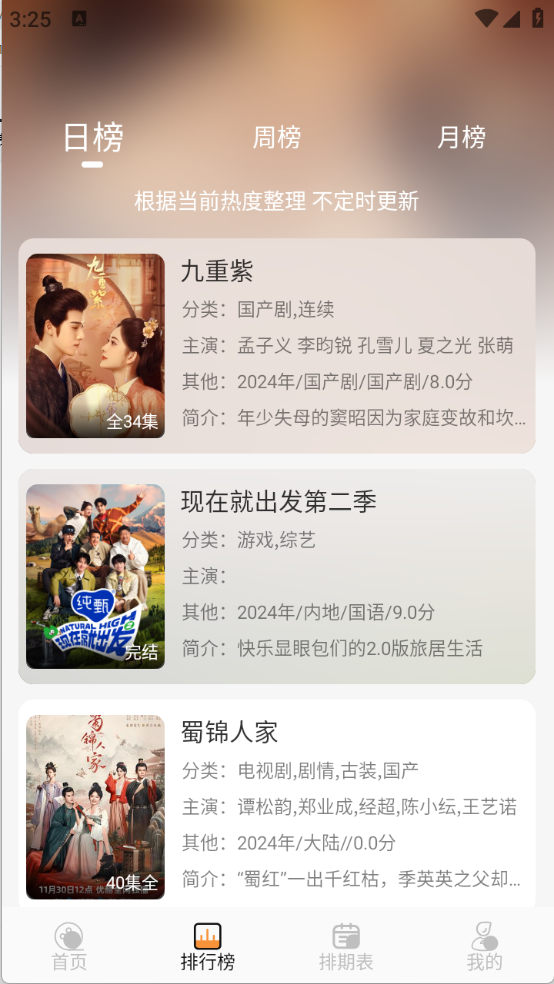 3、排行榜页面会根据当前热度进行整理影视排序。