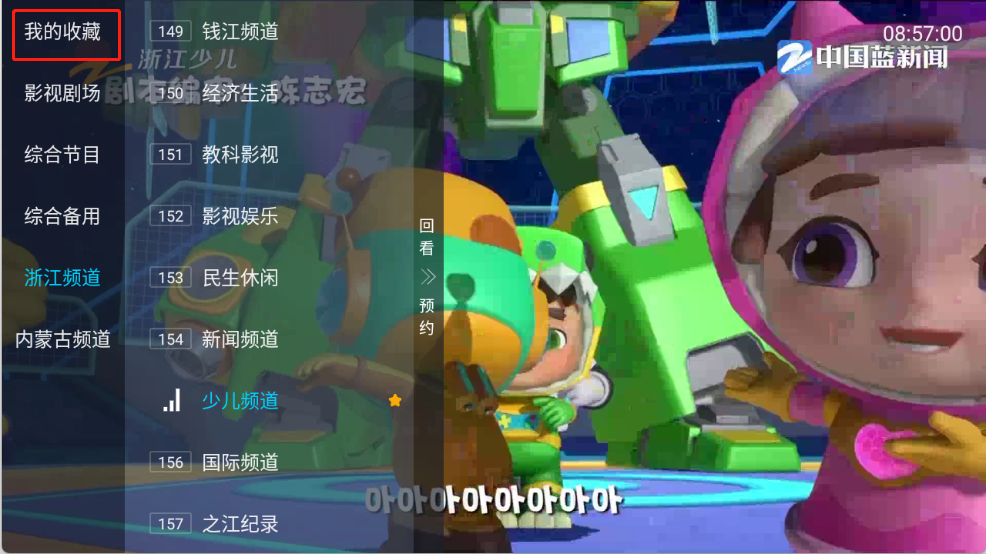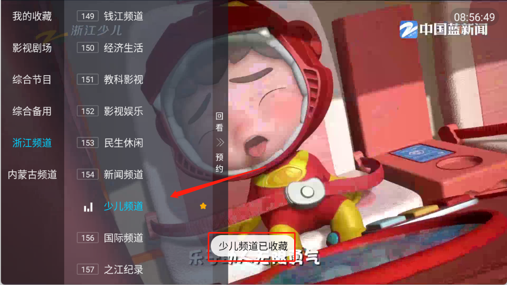 2、点击屏幕可以看到左侧栏中有很多的电视频道。