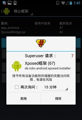 3、此时Xposed框架会提示需要获取root权限,授权即可,随后重启你的手机。