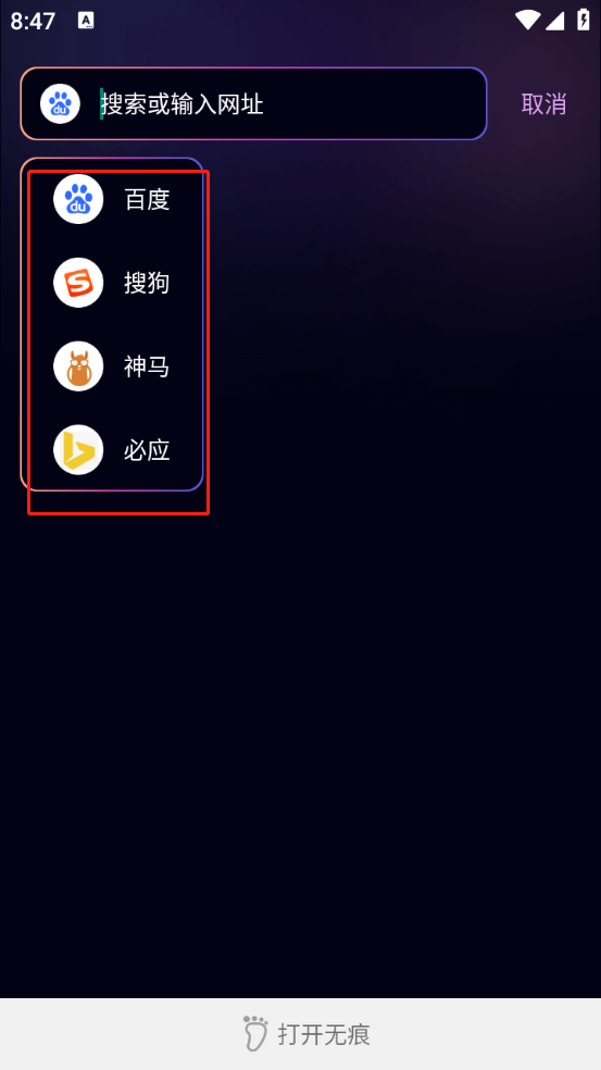 手机自带的浏览器不好用?那就不放试一试夜夜浏览器,多个搜索引擎,包括百度、必应以及搜狗等,随意切换不同的搜索引擎,干扰,搜索速度超级快,可以对网页进行收藏,搜索的资源内容全面,快速满足不同用户的搜索需要,如果你正在寻找一款浏览器,夜夜浏览器将是不错的选择。