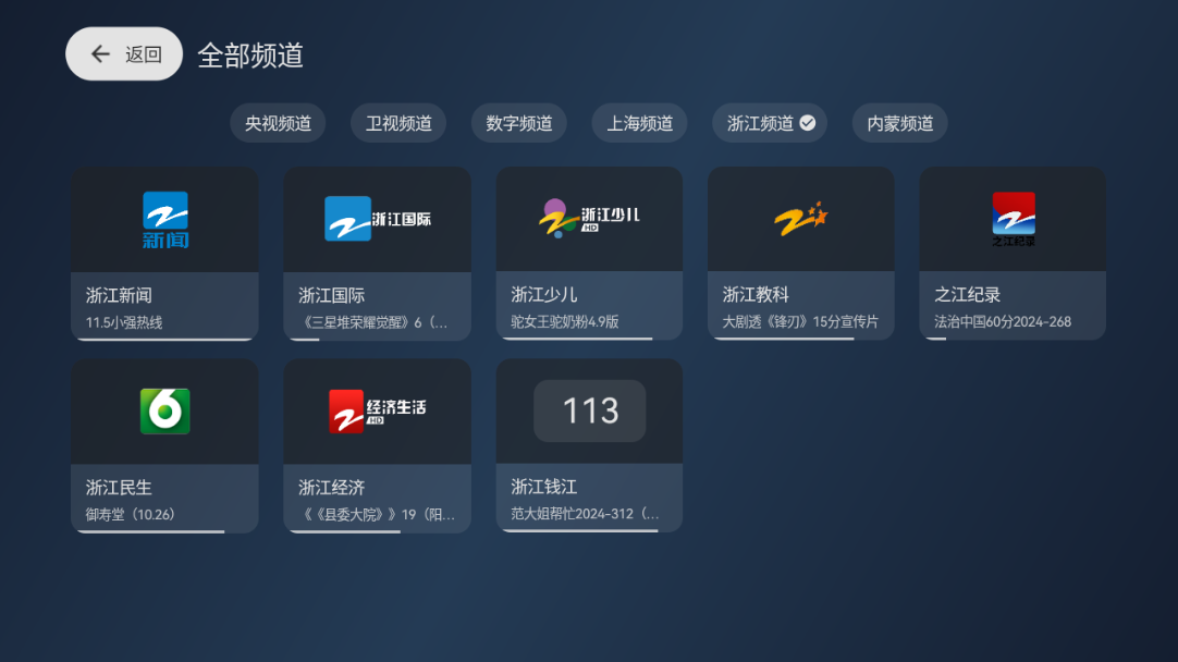 2、点击“全部频道”后,就能看到丰富多样的频道节目,其中涵盖了央视、卫视以及各类地方频道。