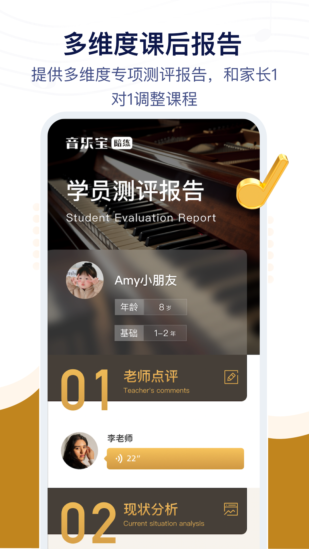 3、音乐宝陪练还具备学习进度跟踪与反馈的功能,能助力用户实时掌握自身学习情况,进而调整学习规划,提升学习成效。