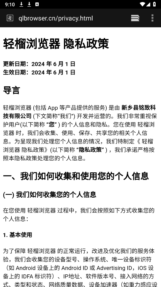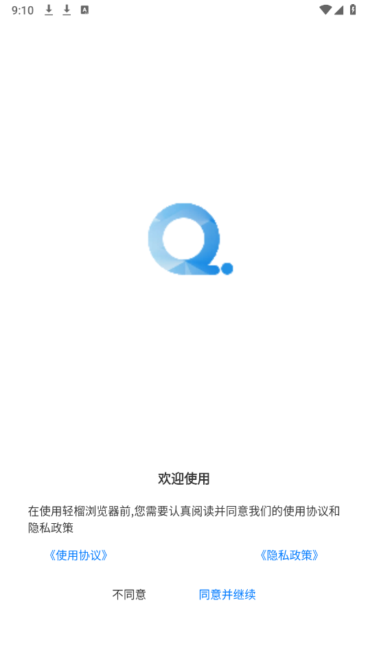 1、下载安装轻榴浏览器,同意对应的政策和协议后将其打开。