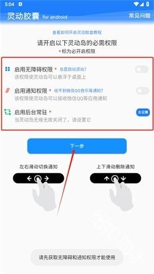 2、打开进入软件,点击开启无障碍和启动通知等权限