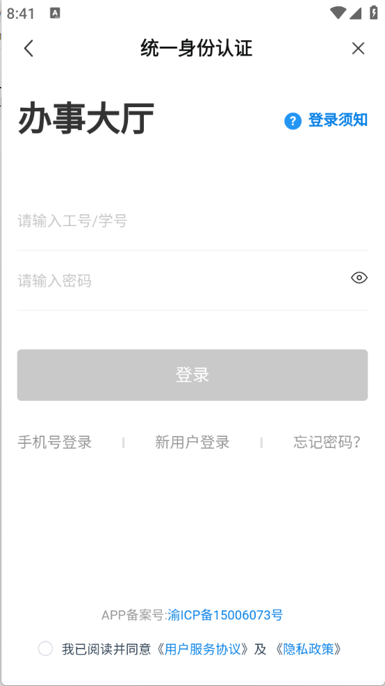 2、登录时需使用密码,其中教职工的登录账号为职工号,学生的登录账号为学号。