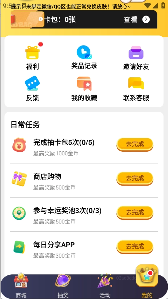 通过完成日常任务、每日签到等途径积累金币,就能免费兑换各类皮肤。不仅如此,应用内还设有超有意思的大转盘和紧张刺激的抽奖活动,轻轻转动转盘或参与抽奖,稀有皮肤说不定就能直接收入囊中,玩法轻松简单又十分解压。平台还会不定时更新丰富多样的活动内容,让你每次打开都能感受到满满的新鲜感。