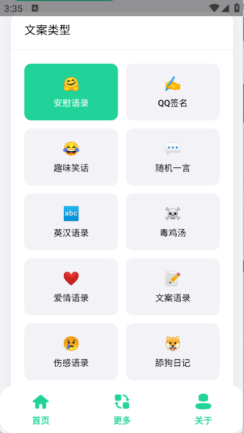 2、进入到首页之后可以选择文案类型。