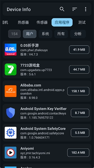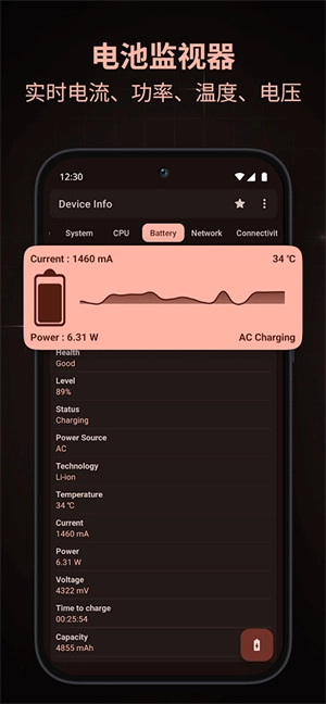 device info软件支持实时监控功能,可动态显示 CPU 使用率、内存占用、电池健康度(温度、电压、循环次数)及网络速度,助力用户优化设备性能。且软件还支持检测液晶显示屏,触摸屏,相机,传感器,内存,闪存,音频,nfc,充电器,Wi-Fi和电池等设备,给用户一个功能全面的手机检测设备使用体验。