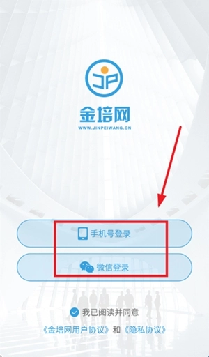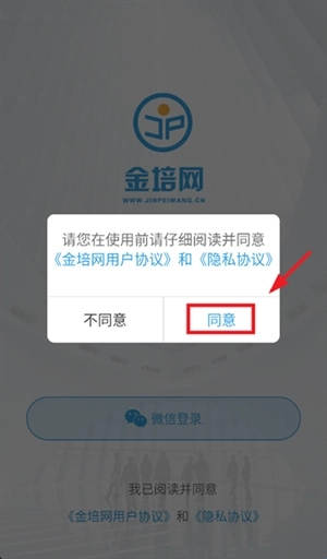 1.安装并打开金培网,先阅读并同意《金培网用户协议》和 《隐私协议》。