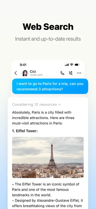 1、具备语音输入与输出功能,用户既能够通过语音对话,也可以通过文字输入的方式与Cici进行交流。