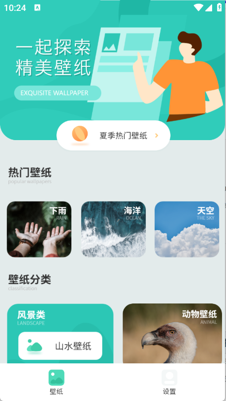 壁纸页面包含多种类型,比如风景类、建筑类和萌宠类。