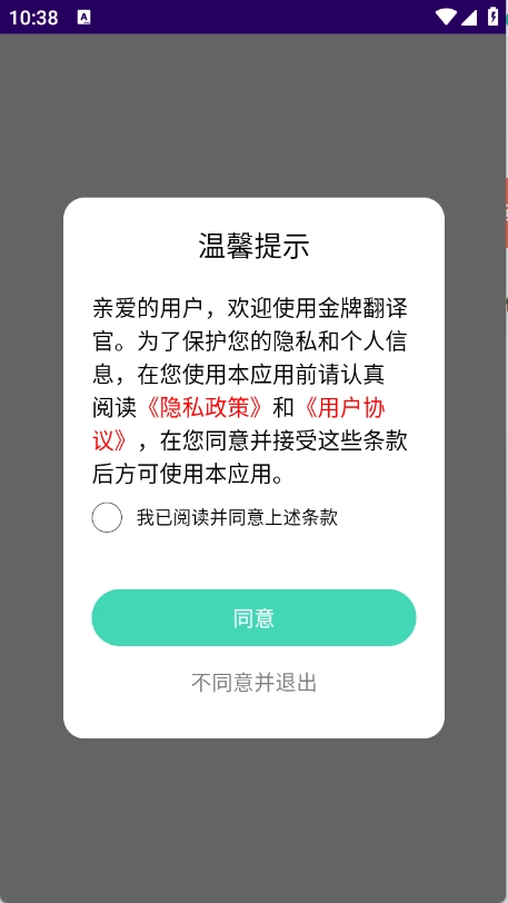 1、用户首先在本站金牌翻译官,查看并同意隐私政策与用户协议。